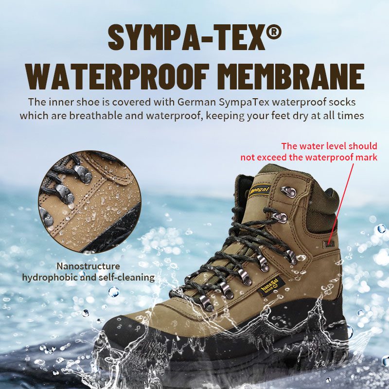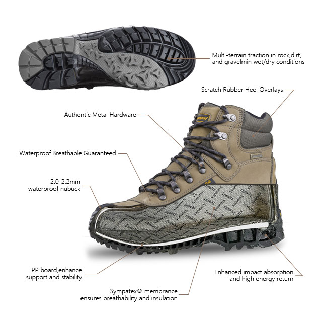 내부 신발은 통기성과 방수 기능이 있는 독일 Sympatex 방수 양말로 덮여 있어 발을 항상 건조하게 유지합니다.