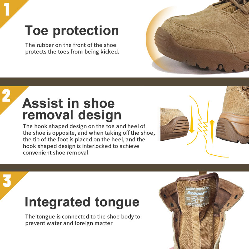 이 Cordura 패브릭 고무 사막 전술 부츠는 재고가 있으며 배송 준비가 되어 있으며 주문은 단 10켤레부터 시작됩니다. 자세한 내용이나 가격문의는 언제든지 편하게 연락주세요. 최소 800쌍 이상 주문 시 맞춤 제작도 가능합니다. 이 모델은 다음과 같은 장점이 있습니다.