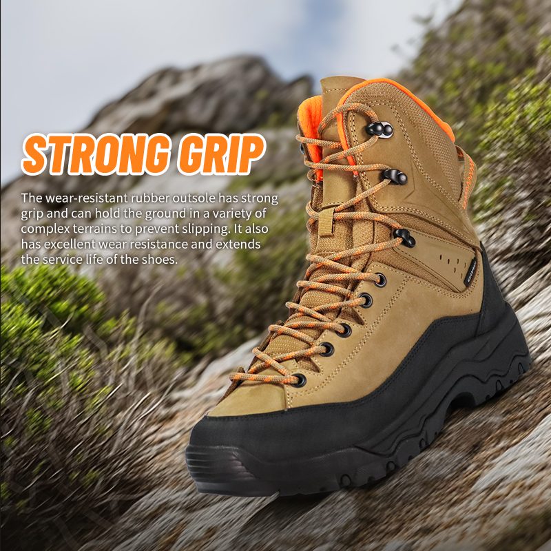 내마모성 고무 아웃솔은 견고한 그립을 제공하여 느슨한 암석, 진흙, 고르지 못한 지형에서도 접지력을 유지합니다. 미끄러지지 않습니다. 내구성이 뛰어나도록 제작되어 신발이 더 오래 착용됩니다.
