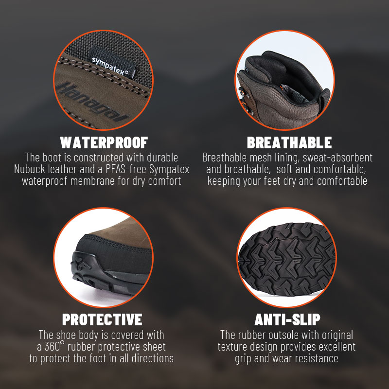 방수 기능은 신뢰할 수 있습니다. 멀리까지 가는 내구성. Sympatex 멤브레인 기술로 제작된 이 Sympatex 방수 내구성 하이킹 부츠는 습기를 차단하는 동시에 발이 숨을 쉴 수 있도록 하여 몇 마일이라도 건조한 상태를 유지합니다. 지속적인 편안함과 안정적인 견인력으로 거친 지형을 다룰 수 있도록 제작되었습니다. 자세한 내용은 문의해 주세요.