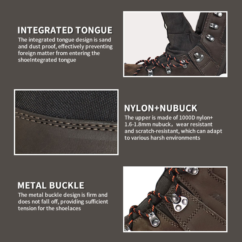 고무 밑창은 진흙, 바위 및 그 사이의 모든 곳에서 뛰어난 견인력을 제공합니다. 미끄럼 방지, 내구성 및 내구성이 뛰어납니다. 강화된 머드가드는 잔해물을 막아주고, EVA 미드솔과 PU 풋베드는 충격을 흡수하여 현장에서 오랜 시간 동안 발을 상쾌하게 유지합니다.