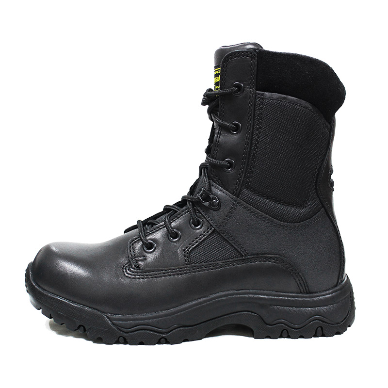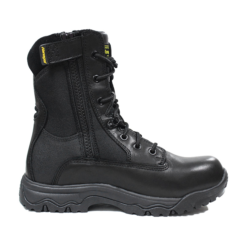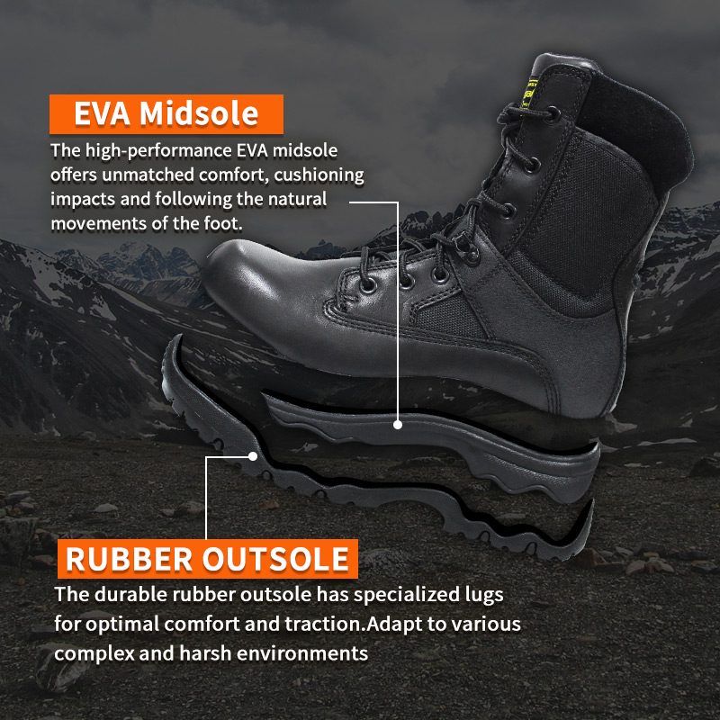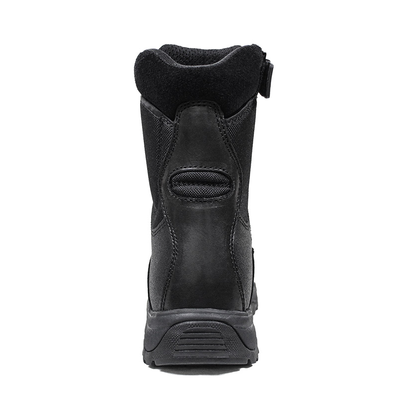 YKK 지퍼 풀 그레인 가죽 경찰 부츠는 험난한 지형에서도 지지력이나 내구성을 저하하지 않고 속도와 이동성을 위해 제작되었습니다. 갑피는 발수성 풀 그레인 가죽과 통기성, 내마모성 기술 패브릭을 결합합니다. YKK 지퍼를 사용하여 빠르고 쉽게 신고 벗을 수 있습니다. 발목 위를 감싸는 하이컷 디자인으로 추가적인 보호와 안정성을 제공합니다. 발 밑에는 고성능 EVA 미드솔이 뛰어난 쿠셔닝을 제공하고 충격을 흡수하는 동시에 발이 자연스럽게 움직일 수 있도록 해줍니다. 그리고 고무 아웃솔? 깊고 특수한 러그는 몇 마일이라도 필요한 그립감을 제공합니다.